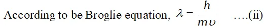 \[ m v r=n \frac{h}{2 \pi} \quad \text { or } \quad 2 \pi r=n \frac{h}{m v} \quad \ldots .(\mathrm{i}) \]