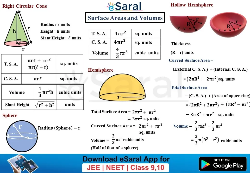 Class 10Get to learn all the formulae and important points of Surface Areas & Volumes through this Mind Map. Download and share with your friends also. Download