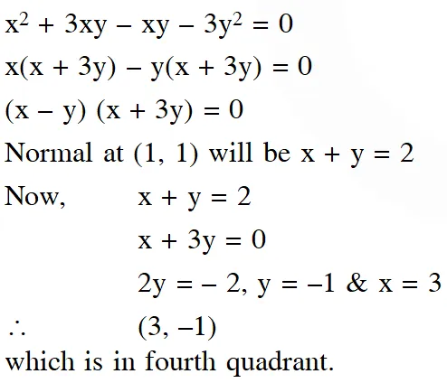Q. The normal to the curve, $x^{2}+2 x y-3 y^{2}=0,$ at $(1,1):$