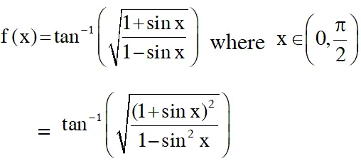 Q. Consider $f(x)=\tan ^{-1}(\sqrt{\frac{1+\sin x}{1-\sin x}}), x \in\left(0, \frac{\pi}{2}\right) .$ A normal to $y=f(x)$ at $x=\frac{\pi}{6}$ also passes through the point :