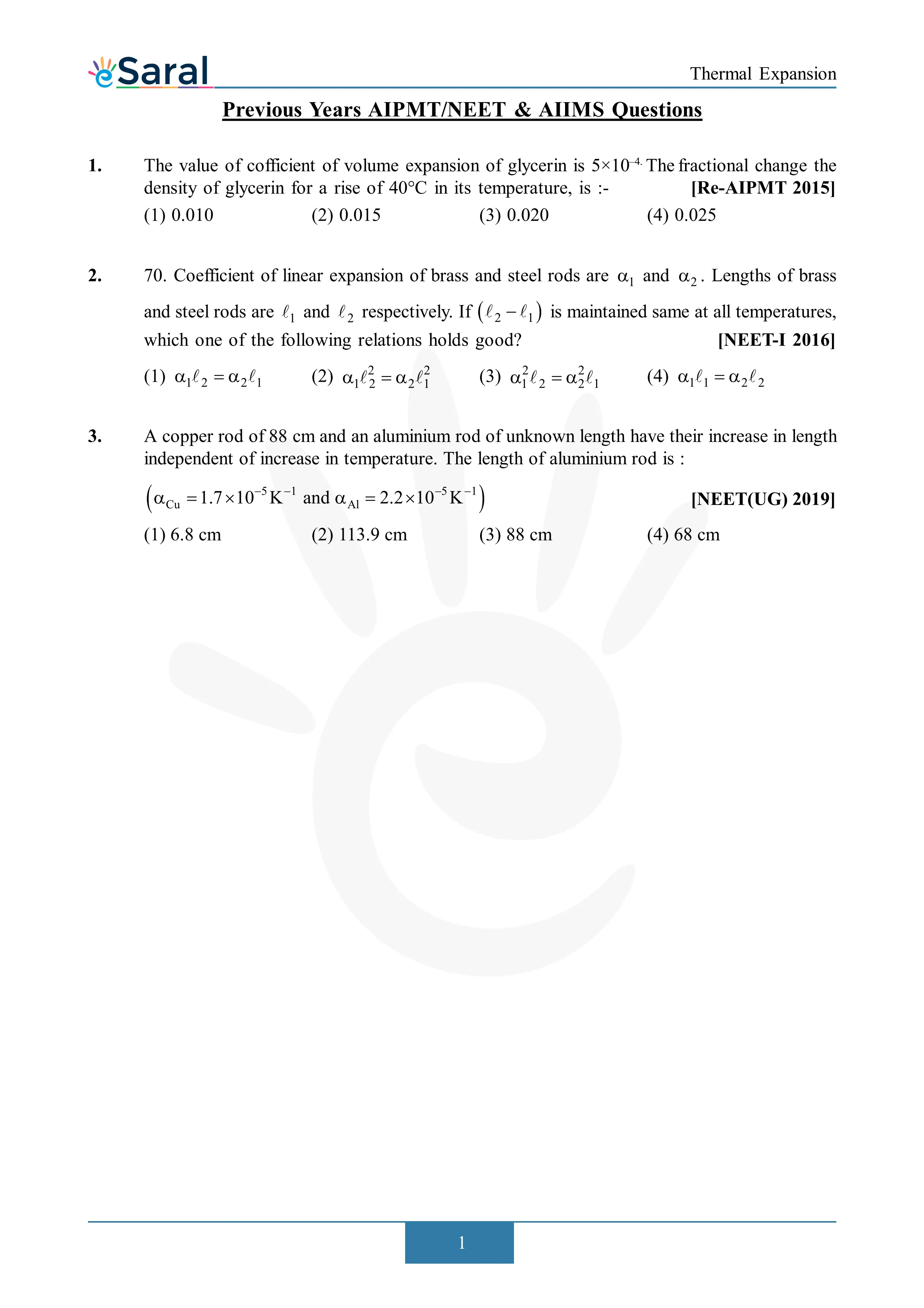 Here you will get Complete Thermal Expansion NEET Previous Year Questions with complete and detailed solutions.