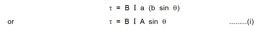 $\mathrm{eq}^{\mathrm{n}}$ (i) could also be written as $\vec{\tau}=\mathrm{I}(\overrightarrow{\mathrm{A}} \times \overrightarrow{\mathrm{B}})$ OR $\vec{\tau}=\mathrm{I} \mathrm{A} \hat{\mathrm{n}} \times \overrightarrow{\mathrm{B}}$