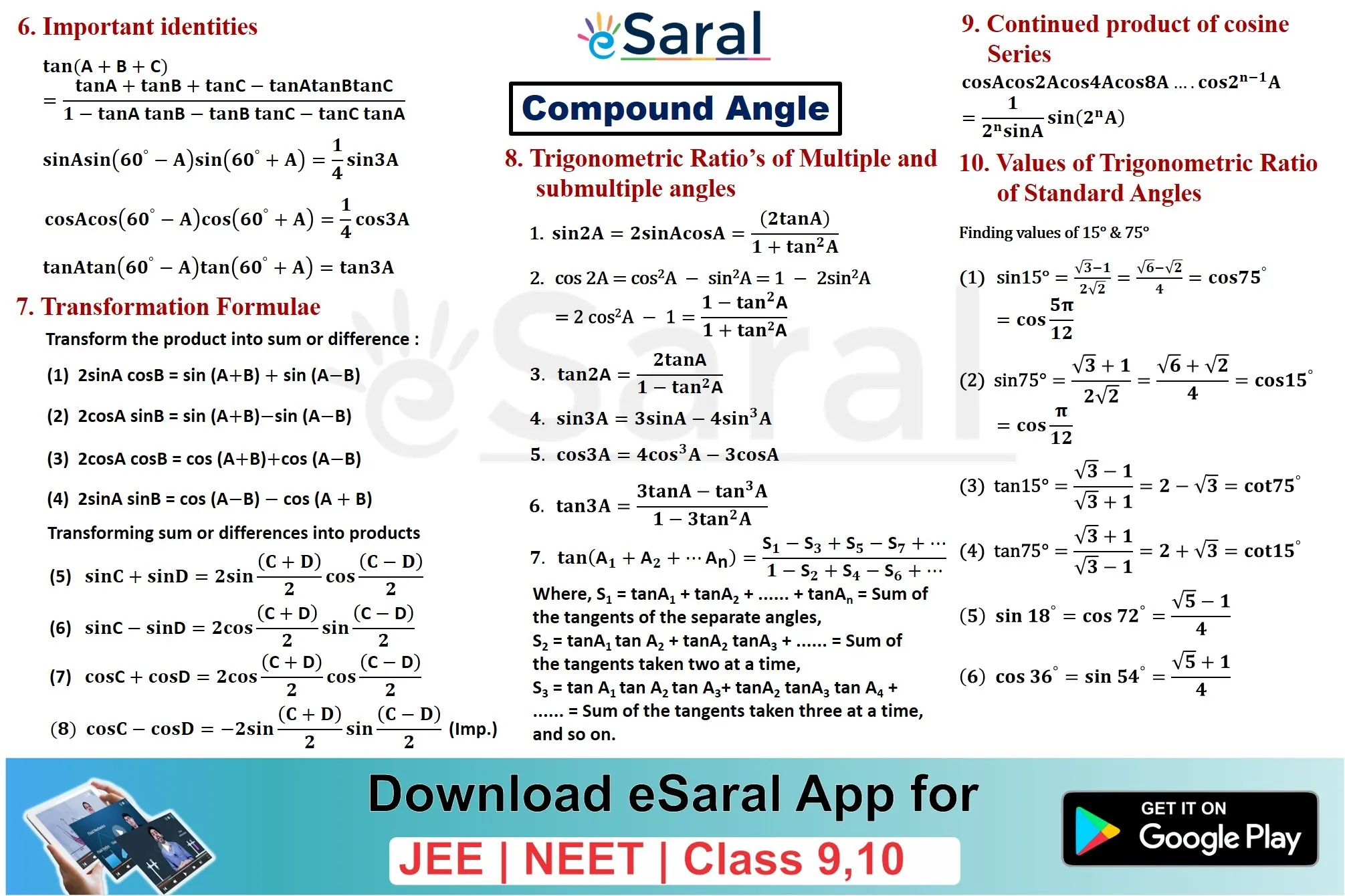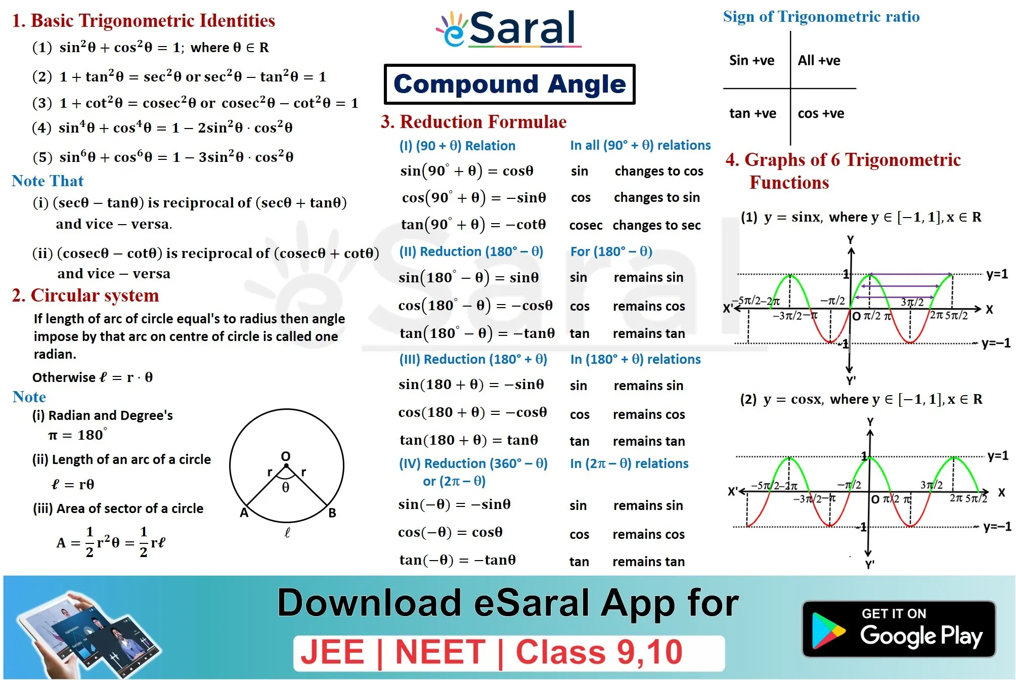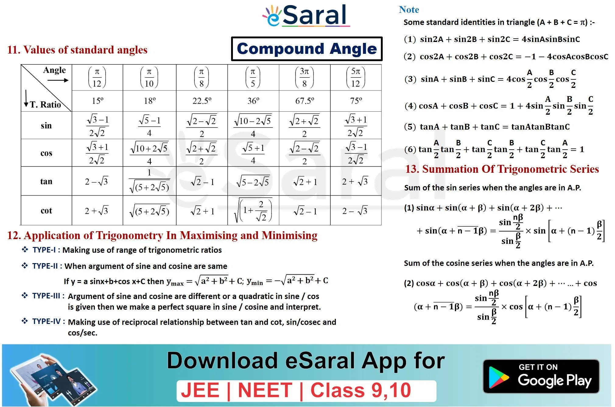 Mind Maps for Trigonometric Ratio: Compound Angles Revision - Class 11, JEE