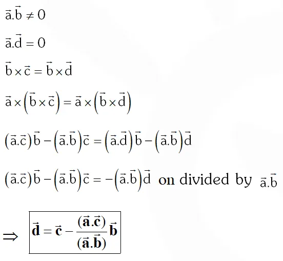 $\Rightarrow \overrightarrow{\mathrm{a}} \times(\overrightarrow{\mathrm{a}} \times \overrightarrow{\mathrm{b}})=-\overrightarrow{\mathrm{a}} \times \overrightarrow{\mathrm{c}} \Rightarrow(\overrightarrow{\mathrm{a}} \cdot \overrightarrow{\mathrm{b}}) \overrightarrow{\mathrm{a}}-|\overrightarrow{\mathrm{a}}|^{2} \overrightarrow{\mathrm{b}}=-\overrightarrow{\mathrm{a}} \times \overrightarrow{\mathrm{c}}$