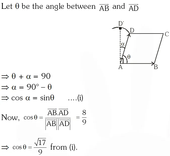 $\Rightarrow \cos \theta=-\frac{1}{3} \Rightarrow \sin \theta=\frac{2 \sqrt{2}}{3}$