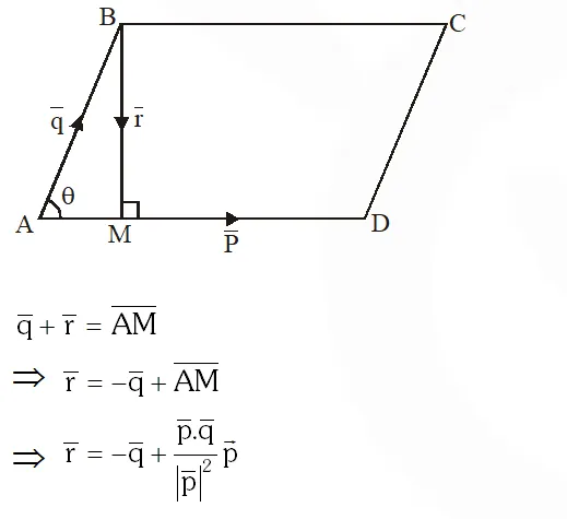 Q. Let ABCD be a parallelogram such that $\overrightarrow{\mathrm{AB}}=\overrightarrow{\mathrm{q}}, \overrightarrow{\mathrm{AD}}=\overrightarrow{\mathrm{p}}$ and $\angle \mathrm{BAD}$ be an acute angle. If $\overrightarrow{\mathrm{r}}$ is the vector that coincides with the altitude directed from the vertex $B$ to the side $A D,$ then $\overrightarrow{\mathrm{r}}$ is given by :