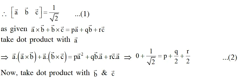 JEE Advanced Previous Year Questions of Math with Solutions are available at eSaral. Practicing JEE Advanced Previous Year Papers Questions of mathematics will help the JEE aspirants in realizing the question pattern as well as help in analyzing weak & strong areas. eSaral helps the students in clearing and understanding each topic in a better way. eSaral also provides complete chapter-wise notes of Class 11th and 12th both for all subjects. Besides this, eSaral also offers NCERT Solutions, Previous year questions for JEE Main and Advance, Practice questions, Test Series for JEE Main, JEE Advanced and NEET, Important questions of Physics, Chemistry, Math, and Biology and many more. Download eSaral app for free study material and video tutorials. Q. (A) If $\vec{a}, \vec{b}, \vec{c}$ and $\vec{d}$ are unit vectors such that $(\vec{a} \times \vec{b}) \cdot(\vec{c} \times \vec{d})=1$ and $\vec{a} \cdot \vec{c}=\frac{1}{2},$ then $-$