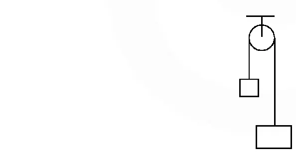 Q. A light inextensible string that goes over a smooth fixed pulley as shown in the figure connects two blocks of masses 0.36 kg and 0.72 kg. Taking g = 10 $\mathrm{m} / \mathrm{s}^{2}$, find the work done (in joules) by the string on the block of mass 0.36 kg during the first second after the system is released from rest.