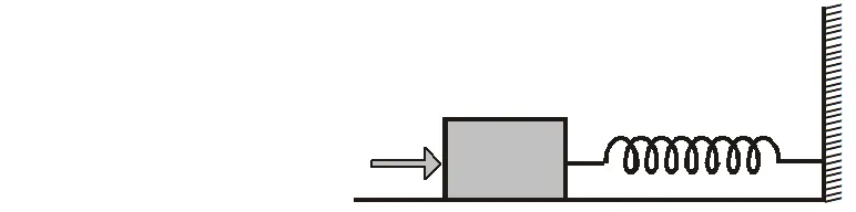 Q. A block of mass 0.18 kg is attached to a spring of force-constant 2 N/m. The coefficient of friction between the block and the floor is 0.1. Initially the block is at rest and the spring is un-stretched. An impulse is given to the block as shown in the figure. The block slides a distance of 0.06 m and comes to rest for the first time. The initial velocity of the block in m/s is V= N/10. Then N is