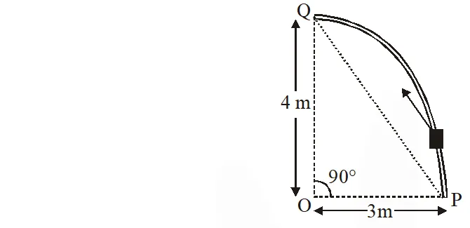 Q. Consider an elliptically shaped rail PQ in the vertical plane with OP = 3 m and OQ = 4m. A block of mass 1 kg is pulled along the rail from P to Q with a force of 18 N, which is always parallel to line PQ (see the figure given). Assuming no frictional losses, the kinetic energy of the block when it reaches Q is (n × 10) Joules. The value of n is (take acceleration due to gravity = 10 $\mathrm{ms}^{-2}$ )