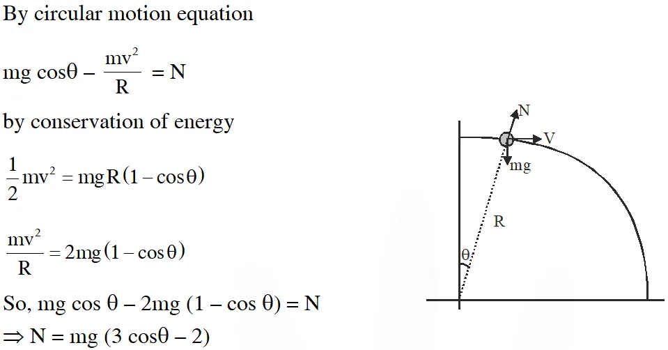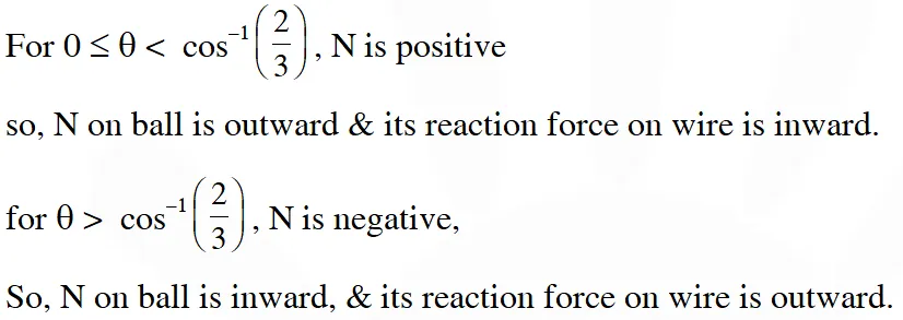 Q. A wire, which passes through the hole in a small bead, is bent in the form of quarter of a circle. The wire is fixed vertically on ground as shown in the figure. The bead is released from near the top of the wire and it slides along the wire without friction. As the bead moves from A to B, the force it applies on the wire is :-